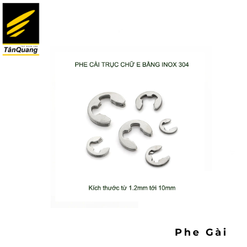 Phe gài là phụ kiện cơ khí chuyên dùng để cố định các chi tiết quay như trục, bạc đạn, bánh răng trong hệ thống máy móc. Sản phẩm của Công ty Xuất Nhập Khẩu Tân Quang được sản xuất từ thép mạ kẽm, inox 304 hoặc hợp kim đàn hồi cao, đảm bảo độ bền, độ chính xác và khả năng giữ chặt vượt trội.
